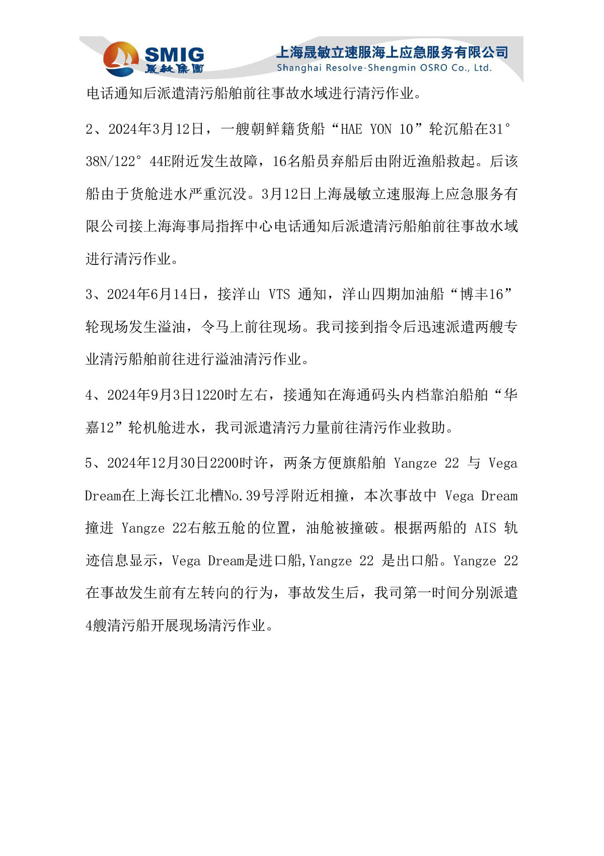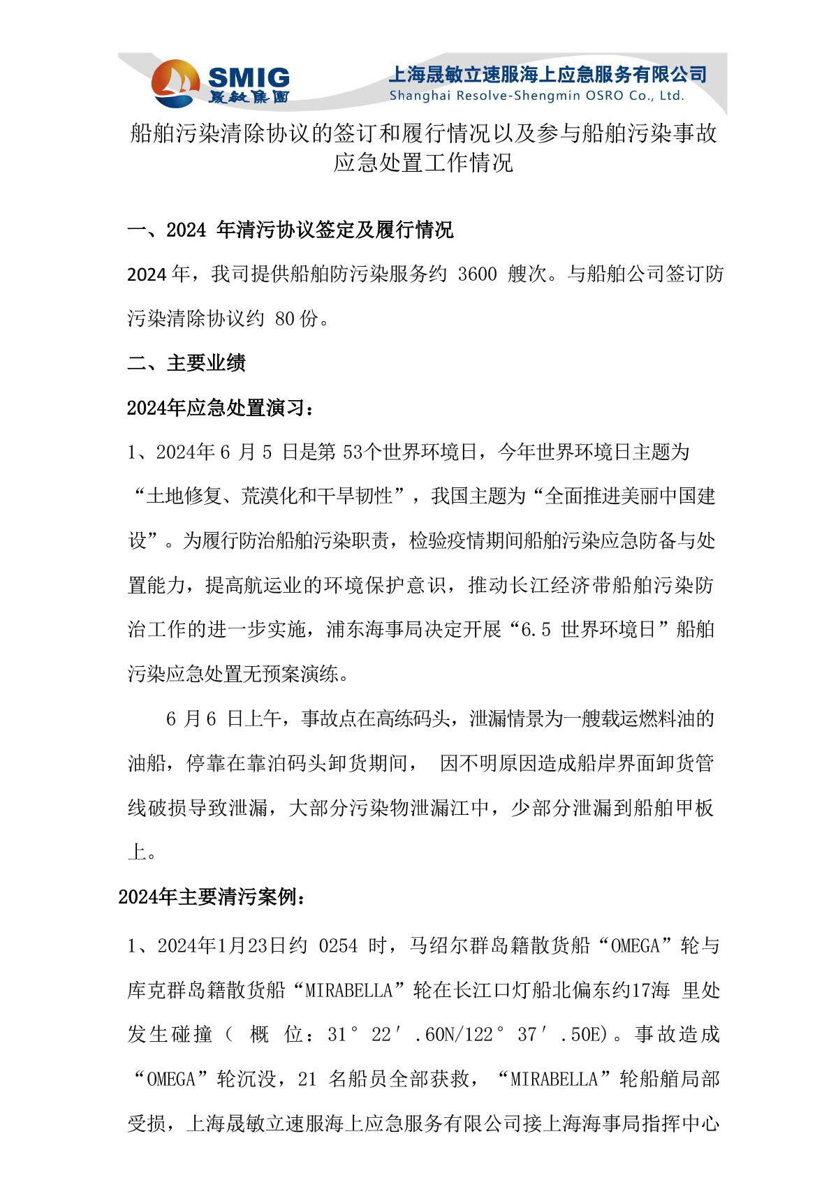 2024年船舶污染清除协议的签订和履行情况以及参与船舶污染事故应急处置工作情况