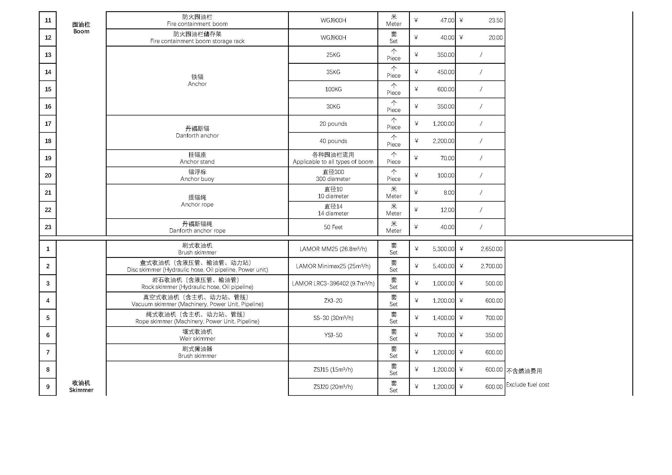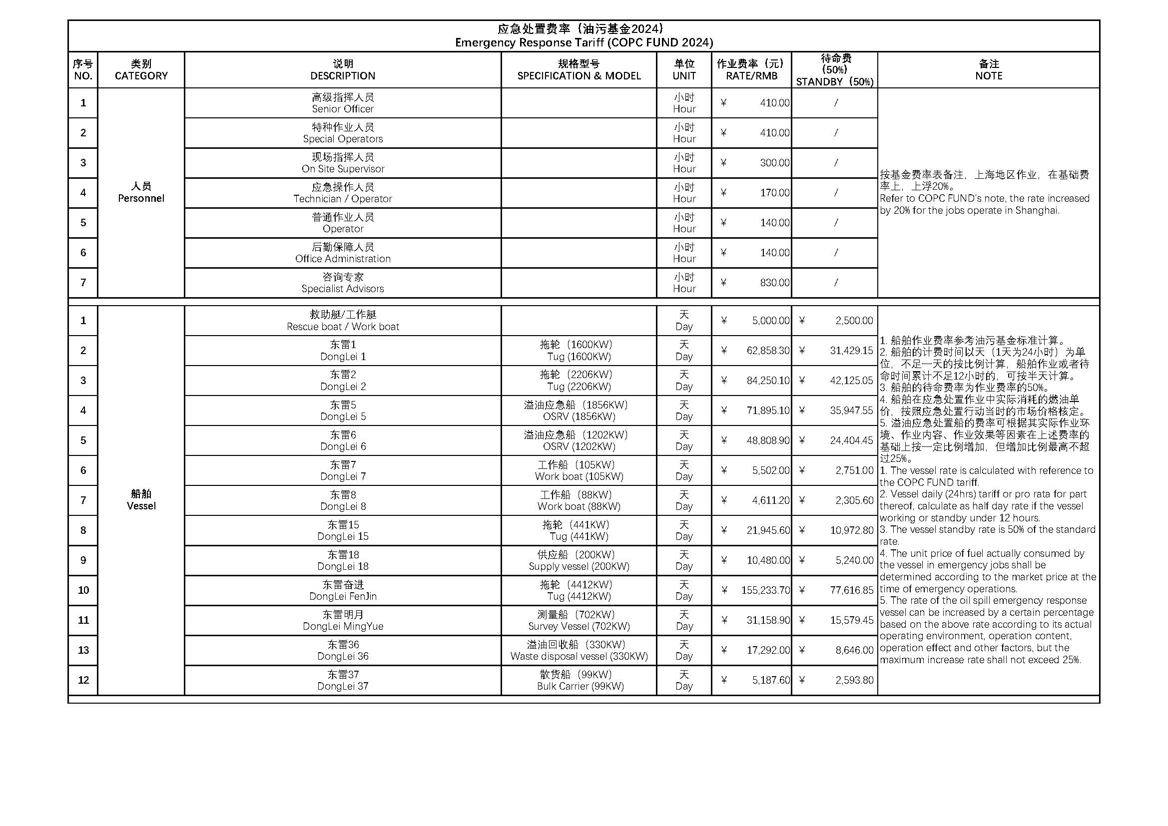 应急处置费率(油污基金2024)